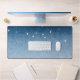 A calming desk mat featuring a soft blue textured background with scattered sparkling stars. This minimalist celestial design brings a peaceful night-sky atmosphere to your workspace, perfect for adding a touch of dreamy elegance to your desk setup.