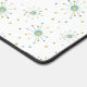 Esta colorida alfombra de escritorio moderna de mediados de siglo presenta un estallido atómico en azul turquesa, verde aguacate, crema y negro. ¡Esto le dará un poco de diversión a su alfombra de escritorio!