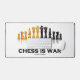 Si crees que el ajedrez es una guerra, podrás disfrutar de esta alfombra de escritorio con un juego de ajedrez reflexivo junto con el truismo de ajedrez que dice "El ajedrez es guerra". ¡Los jugadores de ajedrez intransigentes que van a la guerra en el tablero de ajedrez disfrutarán de esta irónica alfombra de escritorio de actitud de ajedrez!