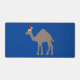 Esta impresionante alfombra de escritorio presenta una imagen de arte digital de un bonito camello Dromedary de color marrón y hermosas pestañas largas y una única joroba en la espalda. El camello está vestido para celebrar a los Navidades con un sombrero de Santa Claus rojo y blanco en la cabeza. El camello aparece en la Biblia y es un símbolo tradicional de Navidades.