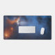 La región central de la nube molecular oscura Chamaeleon I, a 630 años luz de distancia. Capturado por la cámara de casi infrarrojos (NIRCam) en el telescopio espacial James Webb. El material frío y espeso de la nube (azul, centro) se ilumina en el infrarrojo por el resplandor de la joven protoestrella Ced 110 IRS 4 (naranja, parte superior izquierda). La luz de numerosas estrellas de fondo, vistas como puntos naranjas detrás de la nube, se puede usar para detectar hielo en la nube, que absorbe la luz estelar que los atraviesa.
