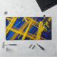 Upgrade your workspace or battle station with this high-energy futuristic design. The striking contrast of neon yellow and deep electric blue creates a sense of speed, technology, and modern digital art. It is an ideal aesthetic for software developers, hardcore gamers, and anyone who appreciates a dark-mode, cyberpunk aesthetic at their desk. The chaotic yet geometric arrangement of glowing light trails provides a stunning visual backdrop that won't distract from your monitors but will definitely impress your stream viewers or colleagues.