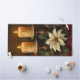 Candle glow adds warm workspace charm.