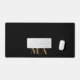 Transforme su espacio de trabajo con nuestra elegante alfombra Monograma Black Gold Name Desk Mat, una perfecta combinación de estilo y funcionalidad. Esta lujosa alfombra de escritorio cuenta con una elegante superficie negra adornada con llamativos acentos dorados, lo que le ofrece un toque sofisticado a cualquier oficina o instalación en casa.