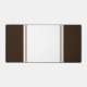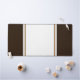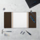 Este diseño deportivo presenta bandas de carreras verticales de centro anchas blancas y mocha marrón contra bordes exteriores marrones.