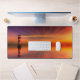 Faro en Sunset Desk Mat Esta alfombra de escritorio es tan práctica como elegante. Perfecto para la escritura, escritura o elaboración, nuestra esterilla de escritorio multifuncional iluminará cualquier oficina o área de trabajo con una impresión de sublimación de tinta de punta a punta. Fabricado con material duradero de neopreno de 3 mm de espesor, cuenta con un respaldo antideslizante para reducir el deslizamiento o deslizamiento en la mayoría de las superficies.