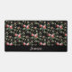 Elegante y de moda de estilo vintage, sin fisuras florales, con rosas rosas rosas rosas, viñas verdes, follaje y flores y claveles blancos. El color de fondo es el personalizable (negro utilizado en la previsualización). Incluye una banda en blanco para su nombre personalizado o monograma.