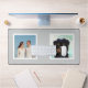 Fotos de la familia personalizado y del perro con fondo gris claro.