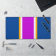 Este colorido diseño deportivo presenta rayas verticales de carreras blancas y doradas amarillas que resaltan una brillante franja central magenta rosa. La composición deportiva se completa con las franjas de borde exterior azul real adyacentes.