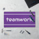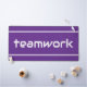 This sporty design features white modern TEAMWORK text and sleek edge stripes against royal purple background. The text and colors in this design can be personalized.