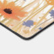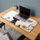 Bring a burst of cheerful color and whimsical charm to your office with this eye-catching black cat desk mat. This illustration features an adorable, fuzzy black cat with strikingly large, wide white eyes and warm orange-tipped ears, peeking out from a dense meadow. The foreground is alive with vibrant wildflowers rendered in a bold, graphic style, showcasing sunny orange daisies, deep blue-purple blooms, and crisp white flowers. The tall golden-yellow grasses frame the scene beautifully, contrasting sharply with the expansive bright white background. This black cat desk mat is perfect for those who love folk-art aesthetics, bold colors, and cute feline designs, adding a joyful, sunny meadow feel to any computer setup.