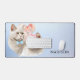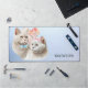 Gatos de acuarela con arcos azules y rosas. Los gatos forman una forma cardíaca. El fondo es azul, pero se puede cambiar.