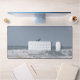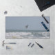 Una alfombra de escritorio con un retrato de una gaviota que sobrevuela el Océano Atlántico.