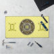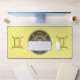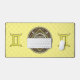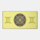 Esta mandala fue diseñada para el símbolo zodiaco, Gemini, que representa una piedra citrina en el centro rodeada de elementos que representan el signo, como el símbolo del signo, la constelación y el símbolo alquímico del aire, así como las viñas y tejas de filigree que la envuelven en una imagen sólida en tonos amarillos, plateados y marrones.