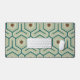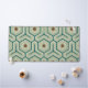 Geometric pattern with interlocking hexagons in green and teal, featuring brown hexagons in the center. The design is symmetrical and retro-inspired.