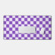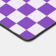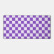 A purple and white checkerboard pattern with alternating squares, creating a balanced design. The vibrant colors give a playful, energetic feel.