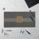 Añada un poco de batido a su estilo con este sencillo pero clásico patrón de pinstripe con una base gris de agua y una franja de acento naranja brillante. Personalizar el monograma en el círculo con tu inicial para crear una alfombra de escritorio única para tu trabajo o espacio de juego.