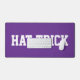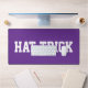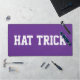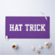This sporty hockey design features white athletic HAT TRICK text against royal purple background. The colors and text in this design can be personalized.