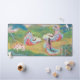 The mat beautifully portrays noble court ladies, resplendent in magnificent jūnihitoe (十二単 - layered ceremonial kimonos), gracefully enjoying an idyllic spring meadow. A gentle ox grazes peacefully by a flowing stream, small birds flutter, and a charming oxcart adds to the serene scene. The entire landscape, rendered with soft, verdant greens and delicate floral touches, evokes a sense of untouched tranquility and poetic harmony, creating a calming backdrop for your daily tasks.