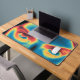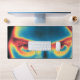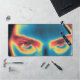 Composición abstracta simétrica de dos formas espejadas, en forma de lágrima. Presenta un núcleo intenso de rojo y naranja, que se desvanece en amarillo vibrante contra un fondo azul profundo, lo que sugiere un momento capturado de liberación o transformación energética.