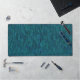 This desk mat features a pattern of overlapping impressionist brush strokes in shades of navy, teal, turquoise and blue.