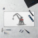 Schreibtischunterlage mit Kran-Grafik.