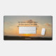 Porque conozco los planes que tengo para ti, declara el Señor. Planes para prosperar y no dañarte, planes para darte esperanza y un futuro. Verso de la biblia de Jeremiah 29:11 en una hermosa fotografía del amanecer del océano. Esta inspiradora alfombra de mesa de citas muestra su texto personalizado bajo una cita bíblica edificante e inspirará a un cristiano a tener fe en Dios.