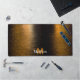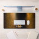 Lámparas abstractas brillantes en el mar Monograma bronceado Mat. Estuche de escritorio único para oficina, habitación, trabajo, taller, sala de juegos. Personaliza con tu personalizado inicial y nombre. Foto de brillantes luces nocturnas brillantes reflejo del mar en colores brillantes de bronce negro y dorado.