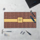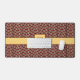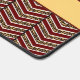 Una estampada de chevron a la moda presenta ricas capas rojas burdeos y blancas brillantes que se unen a las capas de la estética de leopardo. Una línea marrón profunda separa las columnas de chevron para un toque final elegante. Personalizar el monograma en el círculo con tu inicial para crear una alfombra de escritorio única para tu trabajo o espacio de juego.