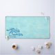 Un lobo azul estilizado (Canis lupus) proyecta una sombra a medida que pasa por un terreno nevado. Personalizar agregando su propio texto.