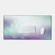 Un bonito diseño de alfombras de escritorio florido con loto sobre un fondo de color verde.