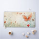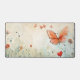 Se trata de un elegante tapete pastoral pintado en acuarela con flores pastel, mariposas y un corazón rojo con colores tenues.