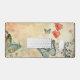 Se trata de una elegante alfombra de escritorio natural con flores de acuarela, mariposas y dos corazones rojos en colores tenues.