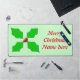 Esta impresionante alfombra de escritorio tiene cuatro hojas huecas completas con una berry roja para unirlas. La baya parece brillar en la luz y las hojas tienen una calidad 3D para ellos. Hay texto personalizado para que pueda incluir un nombre y un mensaje. El mensaje predeterminado es Feliz Navidad.
