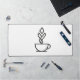 Transform your workspace with this modern geometric desk mat. Featuring a clean, minimalist design of a steaming coffee cup, this large-scale mat is the perfect blend of functionality and high-end cafe art. Ideal for creative professionals, students, and tech enthusiasts who want a sophisticated, organized look for their home office.