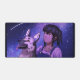 Una chica se sienta con su perro en una fresca noche primaveral viendo las hermosas estrellas sobre ella. Este original diseño de carácter se inspiró en el arte animado.