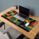 Turn your workspace into a modern artistic composition with this Vibrant Energetic geometric shapes Desk Mat. Inspired by Victor Vasarely’s complex style, with vibrant compositions and a mix of rigidly geometric and more fluid forms, combined with monochromatic and diverse color palettes, creating optical illusions for your Desk Mat. Customize it to make it truly yours—choose your favorite colors, fonts, or personalized text to create a one-of-a-kind Desk Mat—an excellent gift for fans of Retro Mid-Century Geometric art.