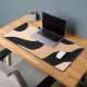 A stylish desk mat featuring smooth flowing black waves over a warm beige background. This modern abstract design brings a minimalist and contemporary aesthetic to any workspace, perfect for creating a clean and elegant desk setup.