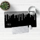 El Purpurina Girly Black and Silver Sparkle Drips Monograma Mouse Pad Desk Mat con nuestro moderno purpurina de imitación gotea en moda lux plateado sobre un fondo negro moderno. Póngase en contacto con nosotros en cedarandstring@gmail.com si necesita ayuda con el diseño o productos de coincidencia.