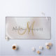 Personalice este elegante monograma dorado inicial y de escritura negra en una alfombra de fondo de perla iridiscente.