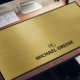Una alfombra minimalista para el escritorio, una almohadilla grande para el ratón para los profesionales de negocios o la oficina en el hogar. Hace una gran idea de regalo para sus empleados, amigos o familiares; o tal vez sólo para usted. El diseño metálico dorado cepillado, con monograma y nombre, se verá asombroso en cualquier casa u oficina.