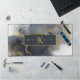Este diseño abstracto de tinta alcohólica que fluye marca el tono perfecto para cualquier profesional de negocios. En tonos que van desde el carbón vegetal hasta el negro, adornado con oro brillante, la alfombra de escritorio que se muestra aquí, proporciona una plantilla para añadir fácilmente su monograma y nombre. Busque Id988 para ver otros productos con este diseño llamativo, incluidas las tarjetas de visita coincidentes.