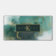 Este diseño abstracto de tinta alcohólica que fluye marca el tono perfecto para cualquier profesional de negocios. En tonos verdes de cristal de mar a esmeralda oscura, acentuada con oro brillante, la alfombra de escritorio que se muestra aquí, proporciona una plantilla para añadir fácilmente tu monograma y nombre. Busque Id988 para ver otros productos con este diseño llamativo, incluidas las tarjetas de visita coincidentes.