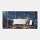 Mostrador con un diseño mágico con velas y destellos de luz con vistas a una escena nocturna con luna. Hermoso para Navidades y mágico para cualquier época del año.