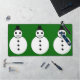 Esta impresionante alfombra de escritorio cuenta con un sonriente muñeco de nieve de Navidades blancos con botones negros y un sombrero superior. Parece un chico genial y le encantaría ayudarte a difundir la alegría de los Navidades este año. El fondo es un tono festivo de color verde.