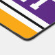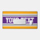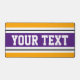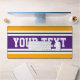 Este divertido diseño deportivo deportivo presenta texto en negrita, listo para personalizar, dentro de una amplia franja de carreras púrpura y blanca resaltada contra un colorido fondo amarillo dorado.