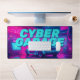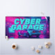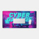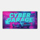 Shift your gaming setup or workspace into high gear with this electrifying cyberpunk desk mat. This massive horizontal canvas flawlessly showcases a breathtaking, neon-drenched futuristic garage. At the center sits a sleek, retro-futuristic sports car, bathed in intense magenta and electric cyan lights. The bold, pixelated "CYBER GARAGE" typography hovering above the vehicle perfectly captures the nostalgic yet forward-looking 80s synthwave and outrun aesthetic.