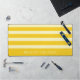 Añada un toque cálido y alegre a su espacio de trabajo con la alfombra del escritorio del patrón de las franjas amarillas doradas y pastel. Esta alfombra, que combina a la perfección rayas amarillas doradas y suaves de color amarillo pastel, proporciona una superficie suave para el teclado y el ratón, mientras que iluminan el escritorio con un diseño elegante. Personalízalo con un nombre para un acento único, convirtiéndolo en un regalo perfecto para oficinas en casa, estudiantes o cualquier persona que ame un espacio de trabajo personalizado e invitante.