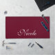 Mat de la mesa de nombres personalizada en blanco y borgoña. Personalice esta alfombra de escritorio añadiendo su nombre en este bonito y elegante tipo de letra.