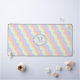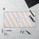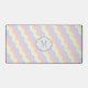 Las líneas de ondas onduladas hacen un patrón simple y divertido en un arcoiris de colores pastel, desde rosa hasta lavanda, creando un lindo patrón para la primavera. Personalizar el monograma en el círculo con tu inicial para crear una alfombra de escritorio única para tu trabajo o espacio de juego.